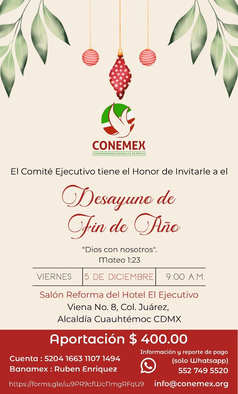 Sirva el presente para saludarles en mi carácter de presidente de la Confraternidad Evangélica de México (CONEMEX), deseando que la bendición y presencia de nuestro Dios sea en nuestra nación, como en la Iglesia mexicana y universal.